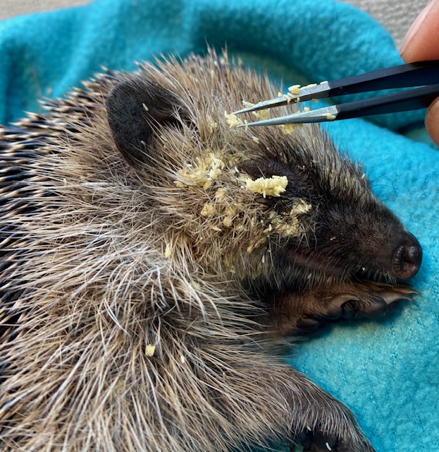 So gut wie jeder schwache und/oder verletzter Igel hat im Sommer Fliegeneier. Auf den ersten Blick sieht man diese vielleicht nicht. Schlüpfen Maden aus den Eiern, kriechen sie in sämtliche Körperöffnungen. Der Igel verendet unbehandelt in kürzester Zeit.